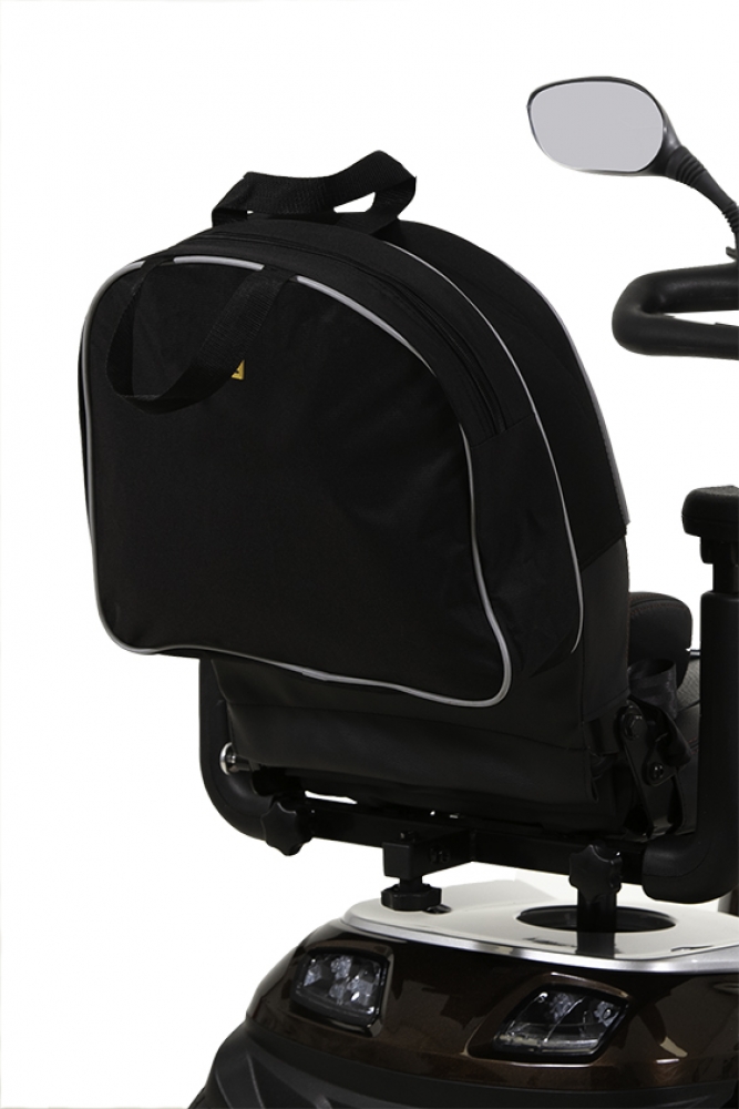 Esta bolsa de scooter simplemente se desliza sobre el respaldo del asiento de scooters pequeños sin cabecera. Duradero. Tiene un gran compartimiento de almacenamiento. Con las dos asas, la bolsa también se puede usar como una bolsa de compras. Incluye costura reflectante para mayor seguridad.