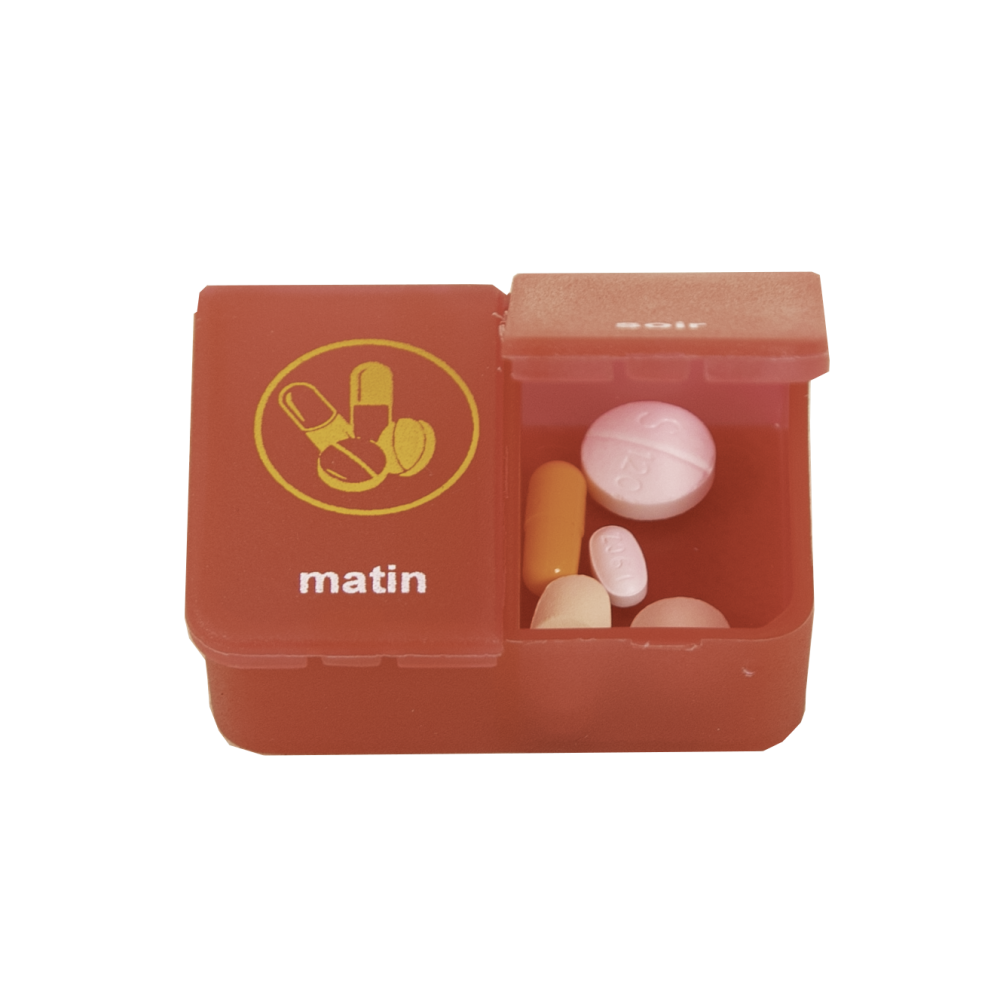 Pastillero 1 día - 2 compartimentos transparente rojo FR
