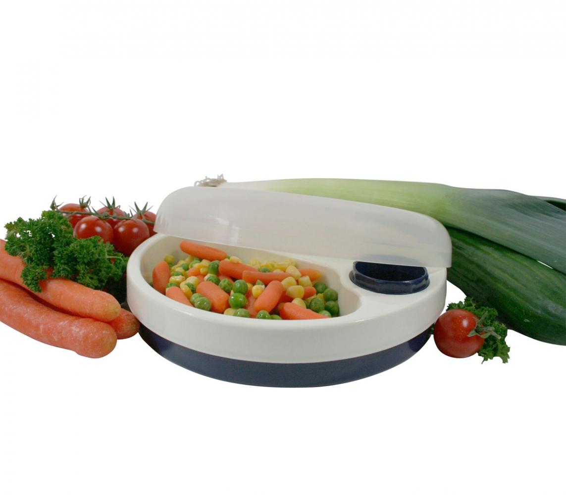 Plato hondo con 2 compartimentos que mantiene caliente la comida, al verter agua caliente en la cámara interior. Superficie inferior antideslizante. Apto para microondas y lavavajillas. Incluye tapa.